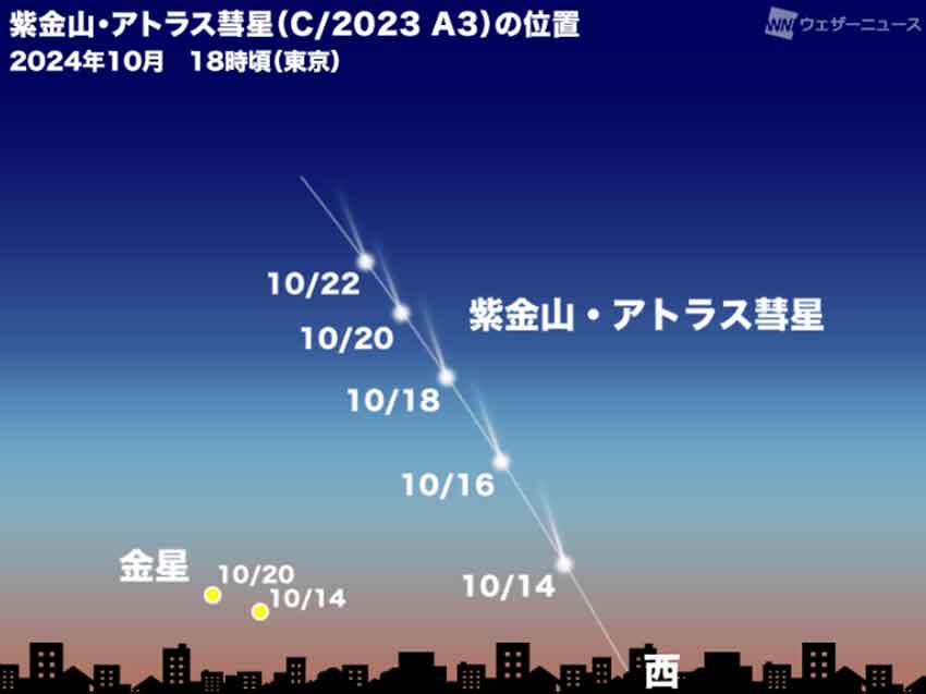 10/15〜10/20頃にかけては夕方6時以降に西の空に出てくるのだとか。